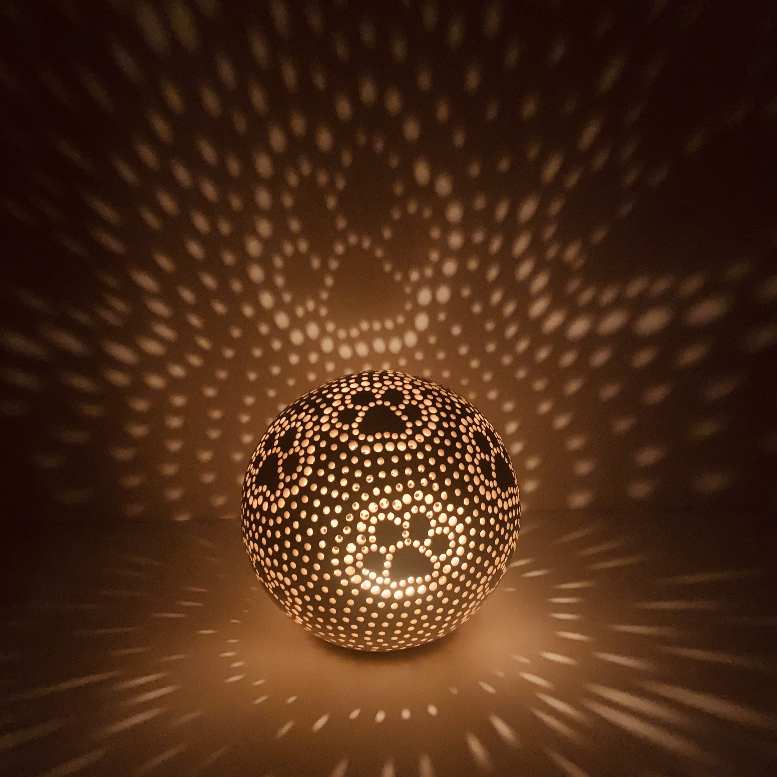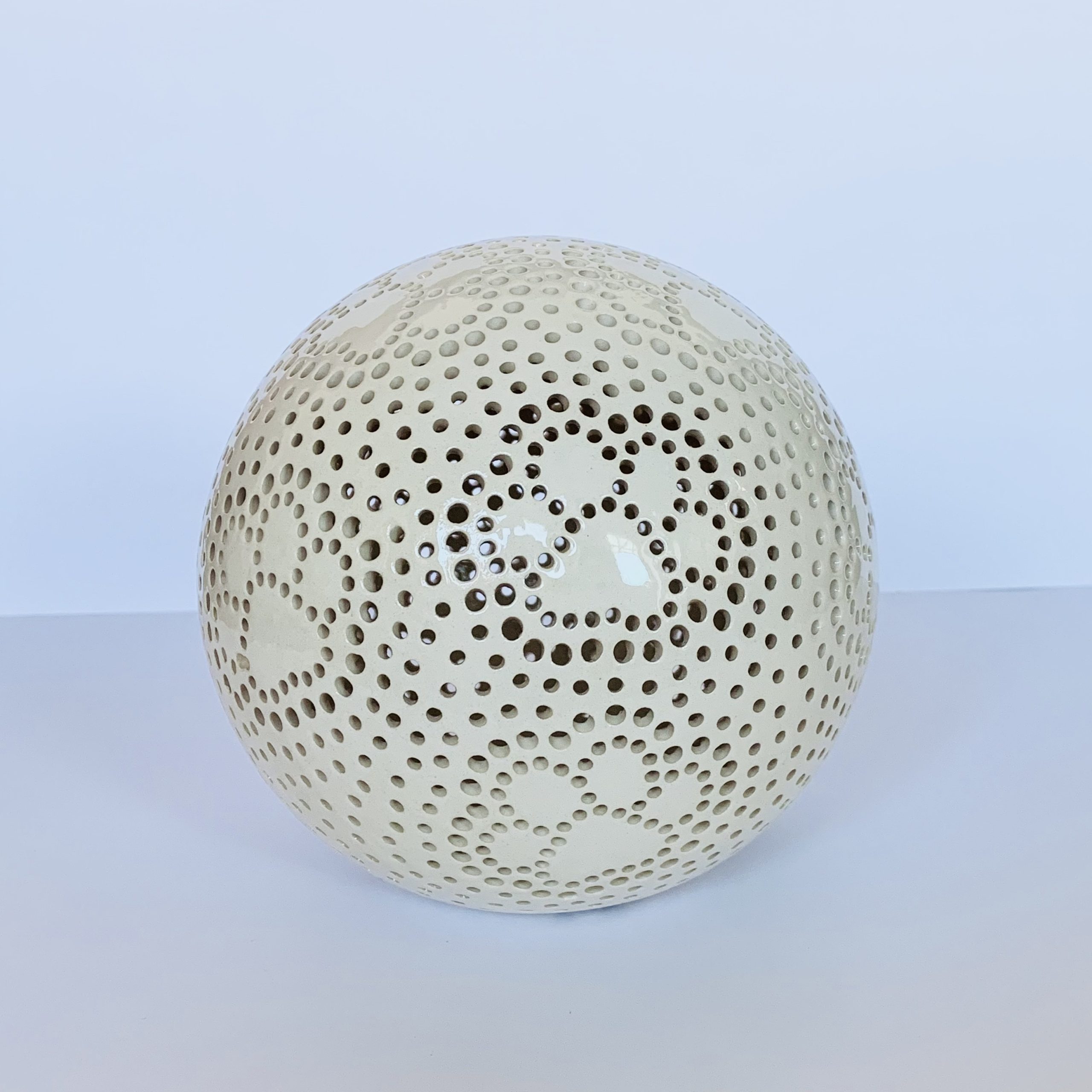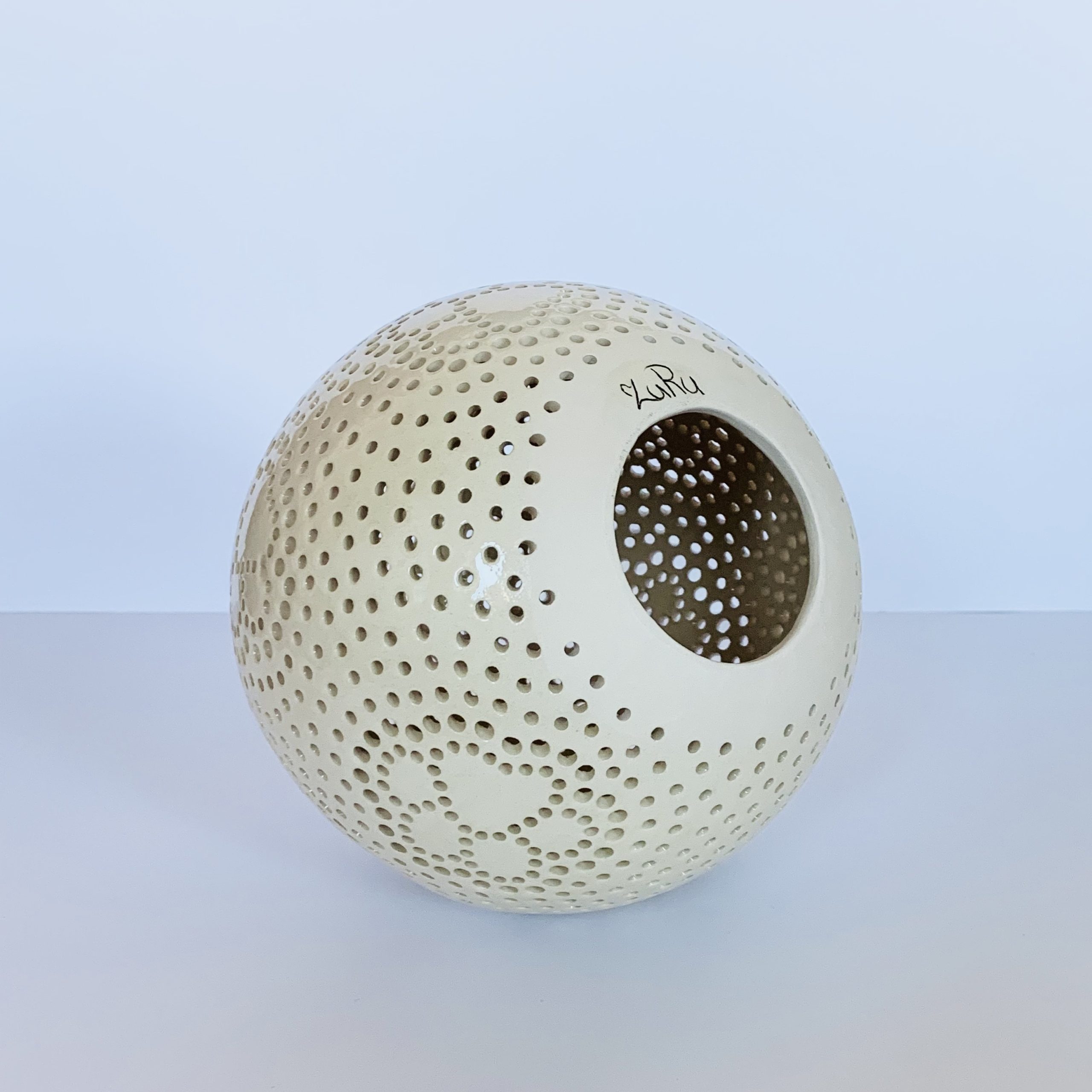 Keramický svietnik s labkami v transparentnej glazúre. Veľké množstvo dierok vytvára krásny efekt na stene aj v priestore. Každý jeden kus je originál – farba a tvar môže mať malé odchýlenie. Zo spodnej časti sa vkladá sviečka prípadne led svetielko. Vhodné do interiéru.
