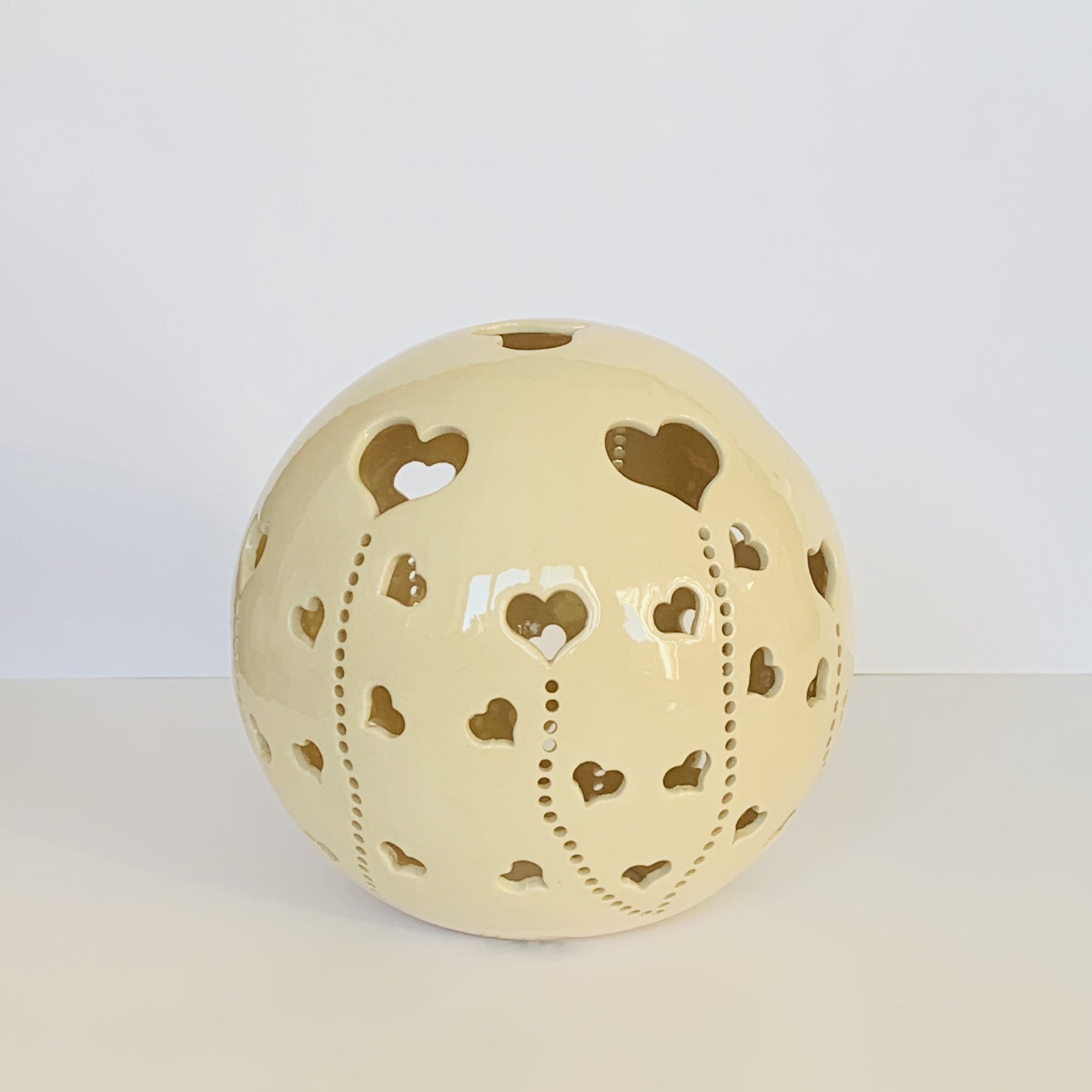Krásny darček na svadbu pre novomanželov, alebo len tak pre niekoho koho máme radi a kto má rád srdiečka 🙂 Keramický svietnik – srdiečka v prírodnej farbe, každý jeden kus je originál – farba, tvar a výrezy srdiečok môžu mať malé odchýlenie. Zo spodnej časti sa vkladá sviečka prípadne led svetielko. Vhodné do interiéru.